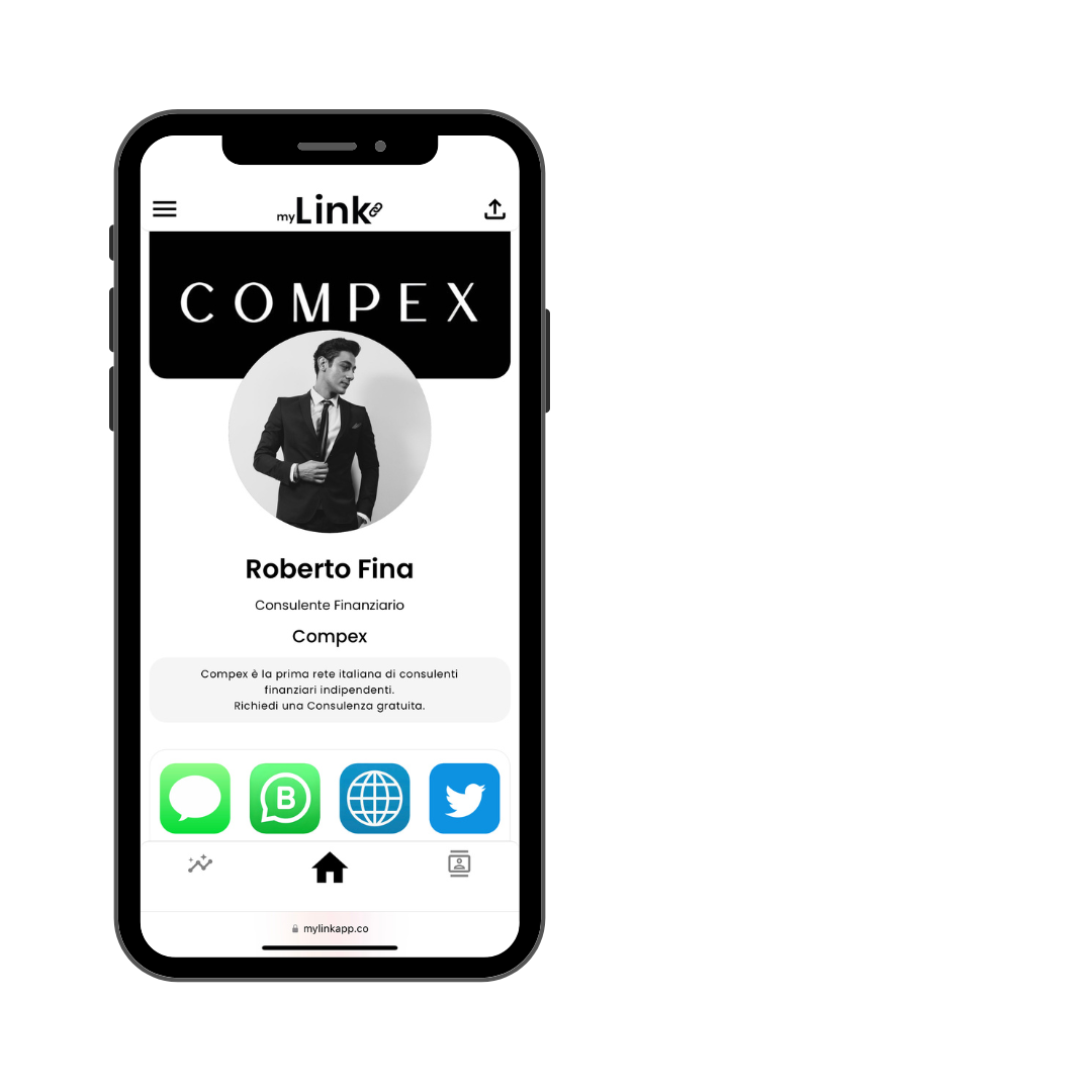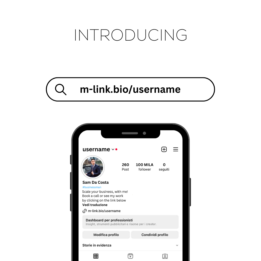 Aggiungi il tuo Biglietto da Visita Digitale myLink alla tua Biografia Instagram, LinkedIn, etc. con una visione compatta del link del tuo Profilo myLink.