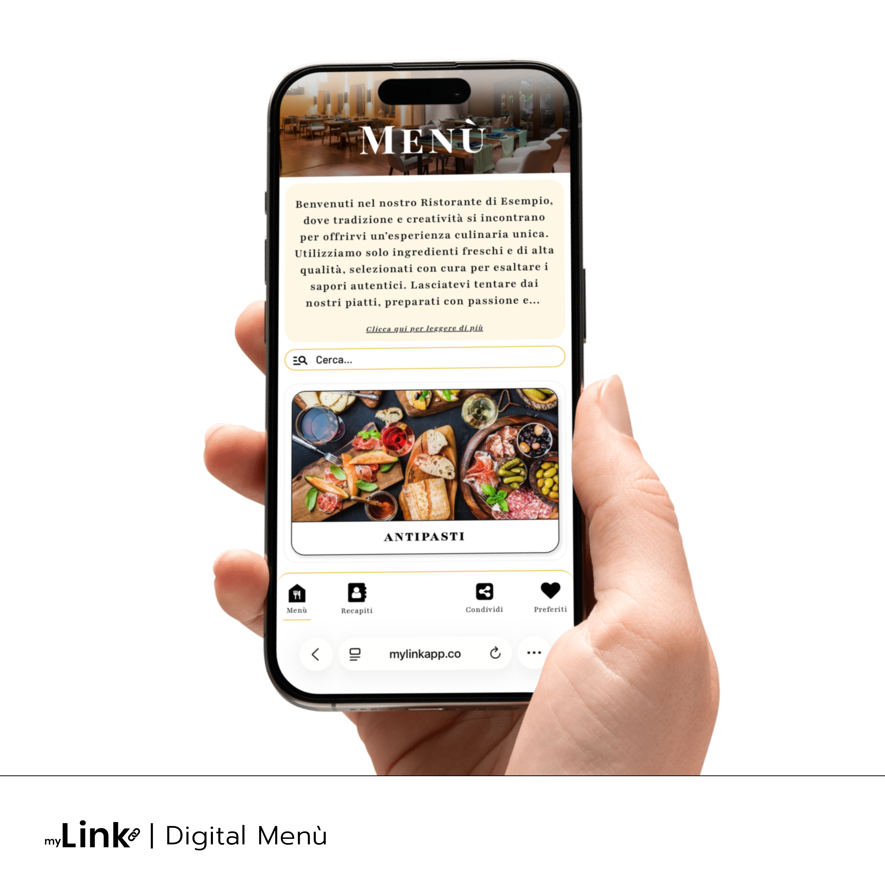 Med myLink | Digital Meny vi gör kundupplevelsen mer interaktiv och modern, tack vare digitala menyer tillgängliga via QR-kod och med myLink | Bokningar , vi tillhandahåller avancerade verktyg för att hantera onlinebokningar enkelt och effektivt, designade för restaurang- och besöksnäringen.