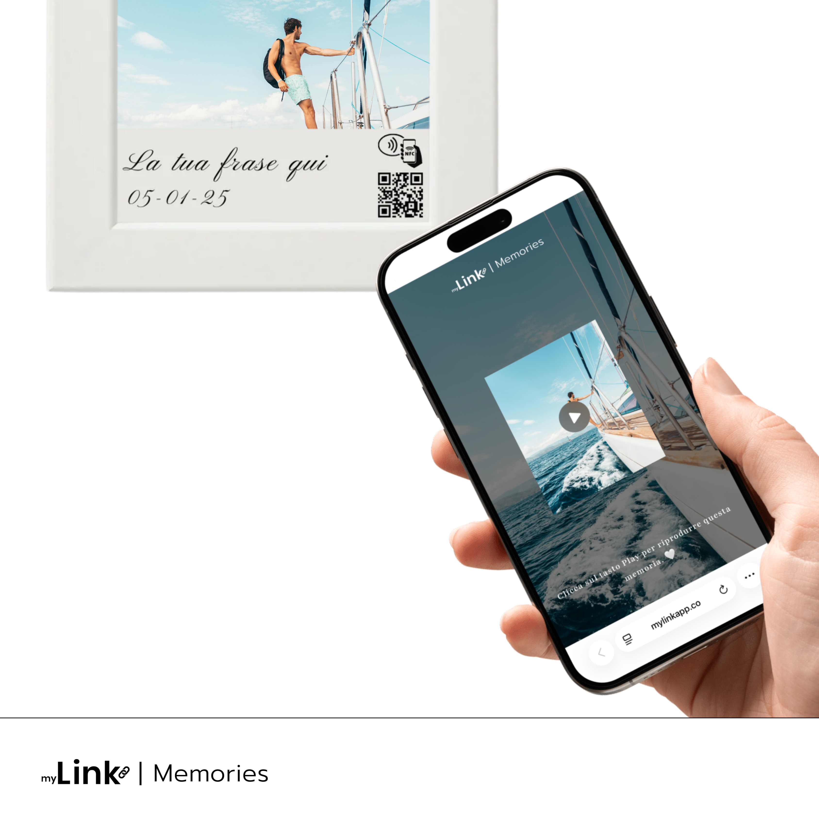 Le nostre Cornici Smart con tecnologia NFC e Codice QR che danno vita alle tue foto: basta una scansione per rivivere e condividere i tuoi momenti più speciali.